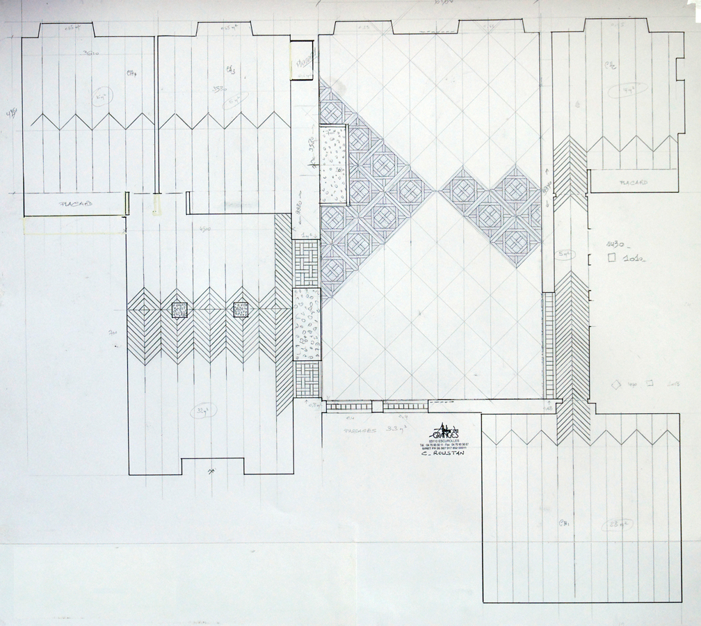 Le calepinage du parquet grisL'implantation des parquets gris est pensée d'une manière globaleLe d'Aremberg est réservé à la pièce de réception, les pavés accueillent les visiteurs, les passages servent de transition et le Point de Hongrie complète l'ensemble